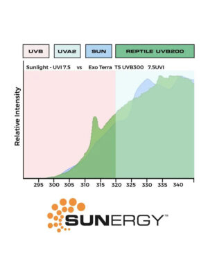 Pokročilá technologie Exo Terra Sunergy reprodukuje sluneční energii lépe než jakákoliv jiná lampa na trhu. VHO T5 trubicová zářivka si zachovává vysokou účinnost po dobu více než 12 měsíců a její vynikající pronikání UVB zářením ji činí ideální i pro vyšší terária s hustými síťkami.