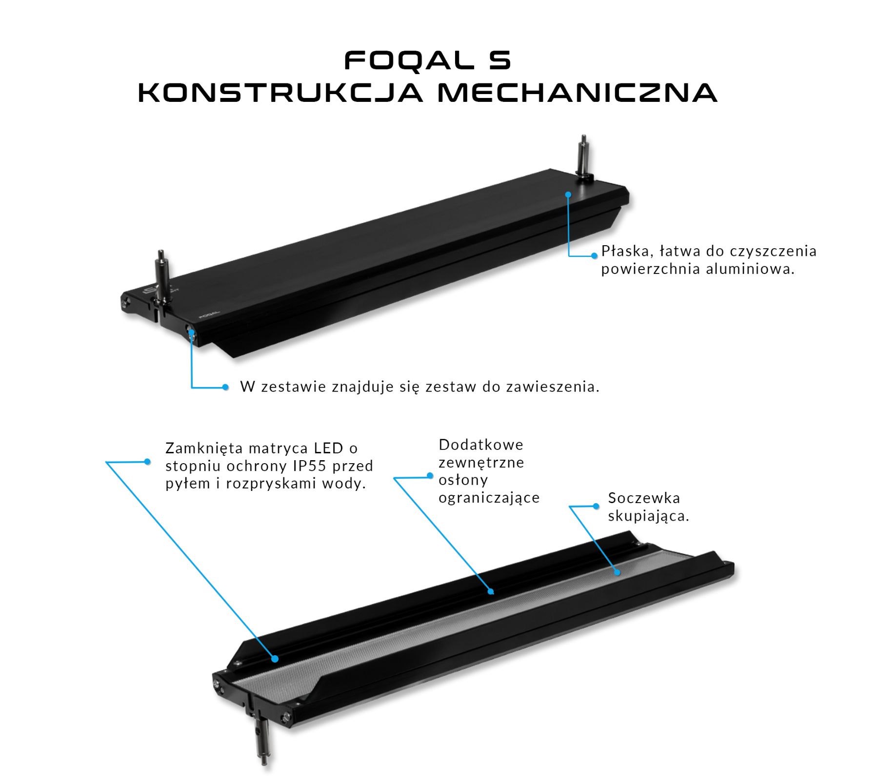 - FOQAL S - wersja podwieszana z soczewką 60° i dodatkowymi osłonami ograniczającymi oślepianie,