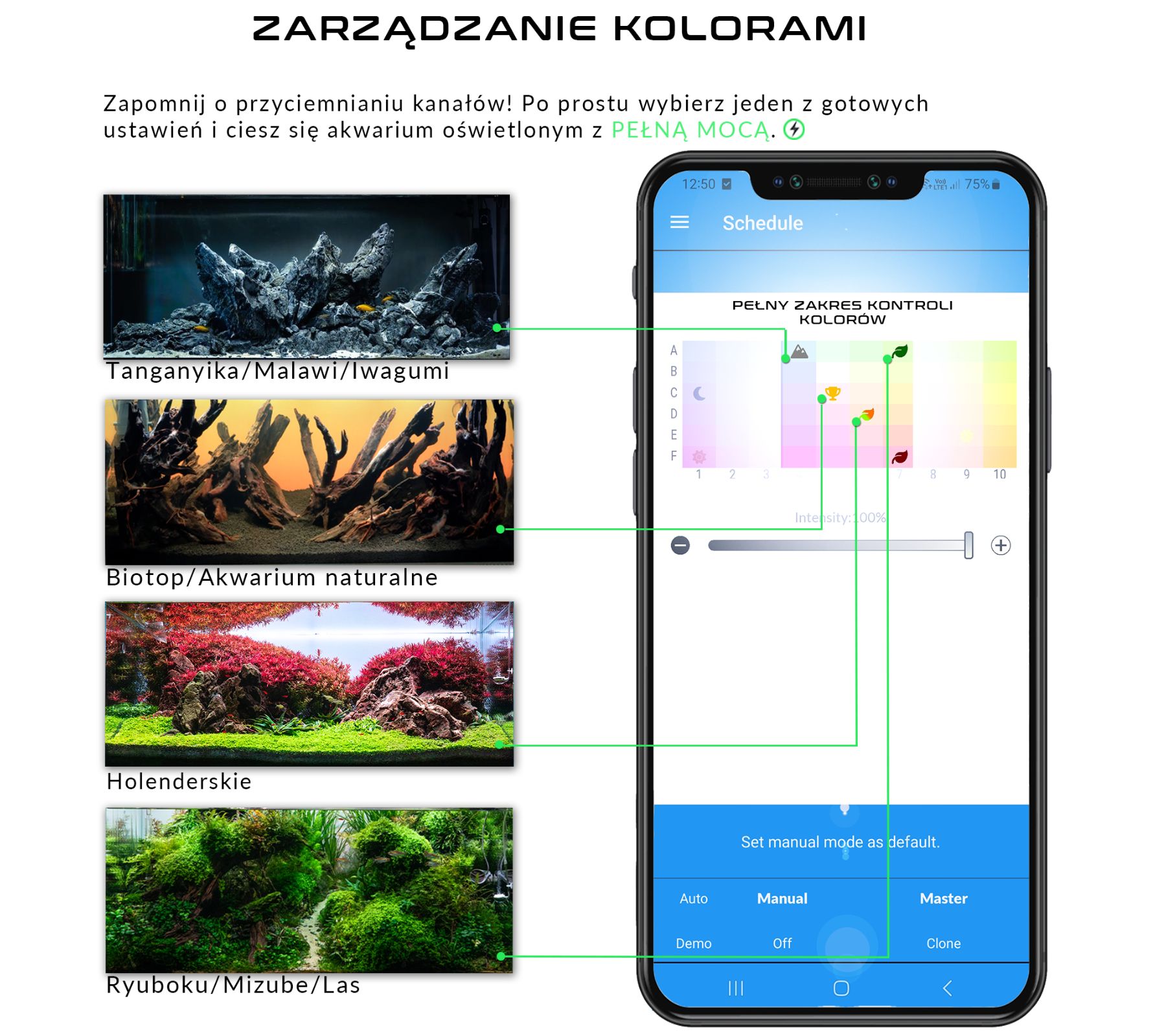 - regulacja jasności i ustawianie harmonogramu dziennego,